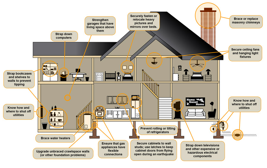 Identify safe locations in your home, school, or workplace where you can take shelter during earthquakes.